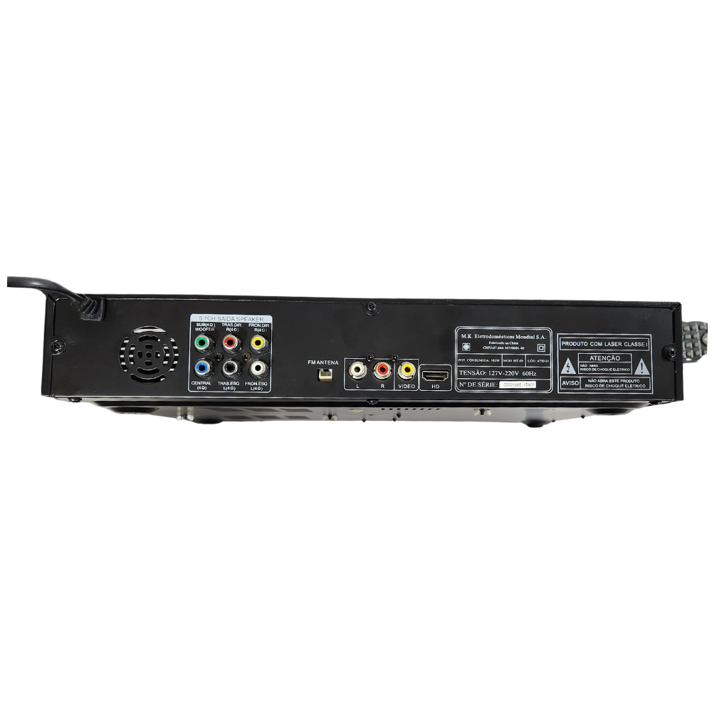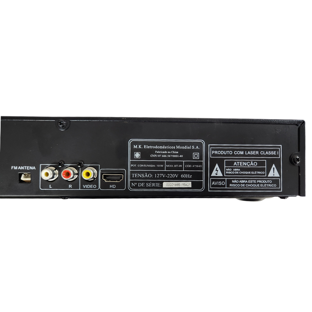 Itens Inclusos: 1 Home Theater Mondial HT-09, 1 amplificador com subwoofer; 5 caixas acústicas; 1 controle remoto.